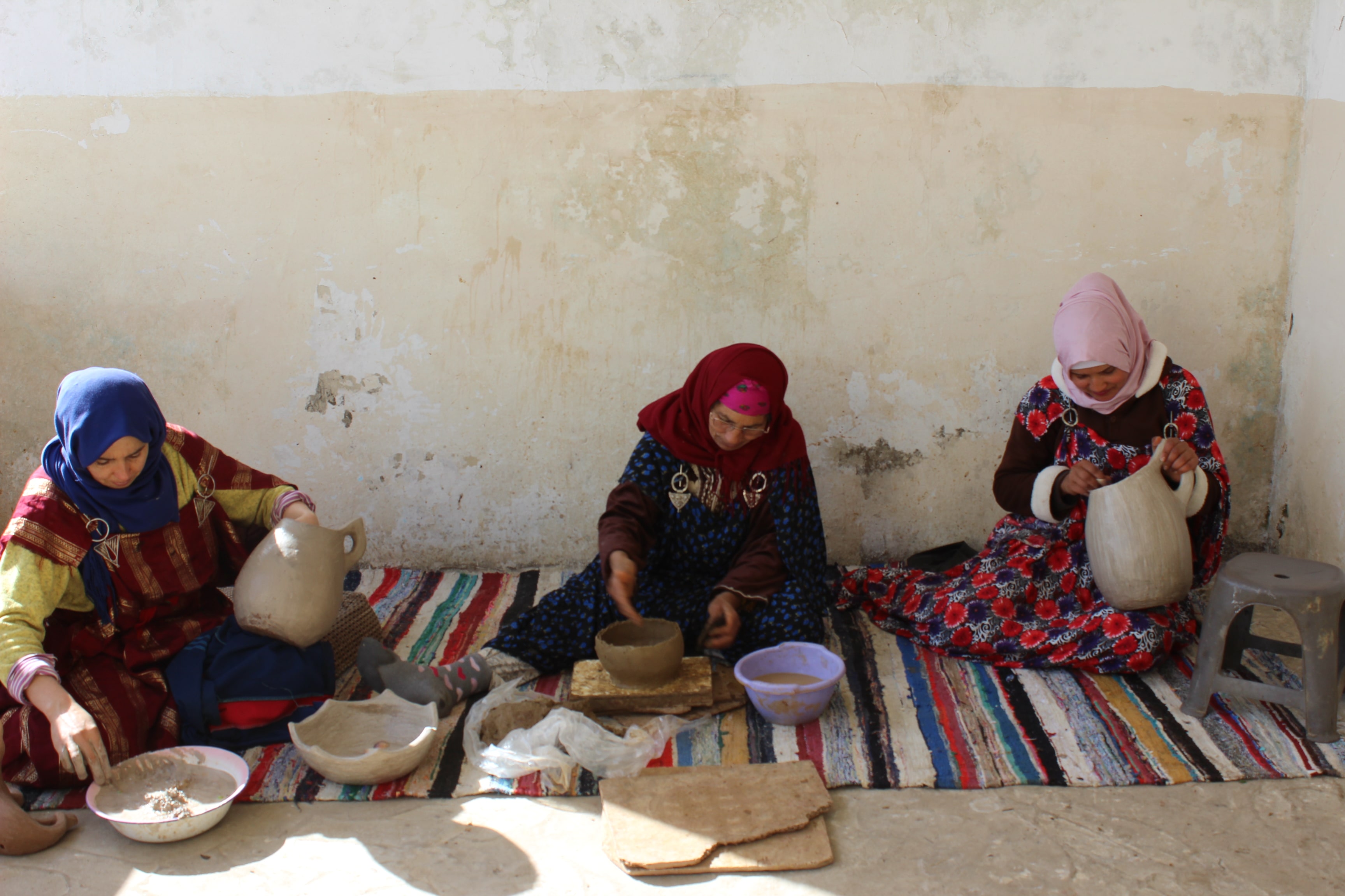 Une fois l’argile ramenée chez elles. Hanene, Mbarka et Ahlem commencent la transformation de cette argile brute en matière qui permet la sculpture. Mbarka , maman de Hanène âgée de 60 ans , nous explique que cette eau froide entraine de grands maux et qu’à partir d’un certain âge, il devient impossible aux femmes de la travailler. Mbarka , passionnément, le sourire au visage, nous montre les prouesses de l’expérience et en un quart de tour , elle façonne une sorte de vase dont le design a été inspiré suite à divers rencontres avec de jeunes étudiants aux Beaux Arts de Tunis. Avec une grande fierté, elle nous explique aussi les différents signes qu’elles dessinent sur leurs créations : « avant que nous ayons eu droit aux formations et encadrement dans le cadre du projet, nous ignorions les significations de ces signes, j’aurais aimé que ma mère et l’arrière grand-mère de mes filles ait pu les connaitre. Nous n’avions fait que les reproduire pendant tout ce temps en ignorant le sens ». Si aujourd’hui la poterie de Sejnane, grâce notamment aux efforts fournis par la société civile tunisienne, a été inscrit au patrimoine mondial de l'UNESCO, du chemin reste à faire, selon nos potières militantes: une certaine sécurité sociale qui leur permettrait de vivre dignement doit être garantie, ainsi qu’une reconnaissance, beaucoup plus importante à leurs yeux qui est celle des autorités locales et tunisiennes.